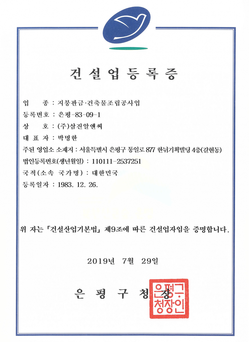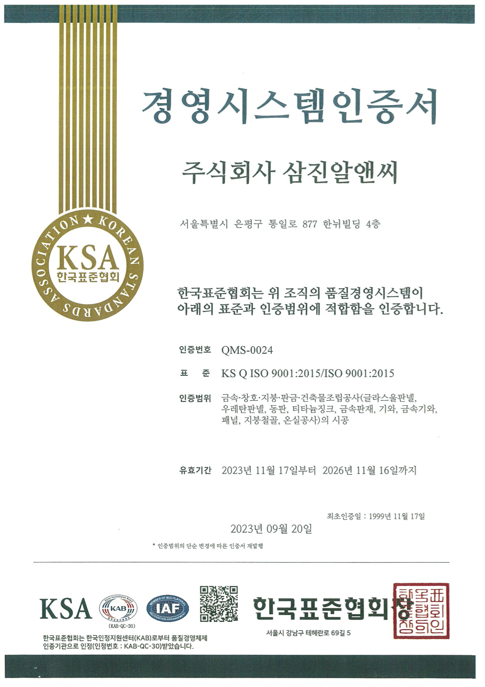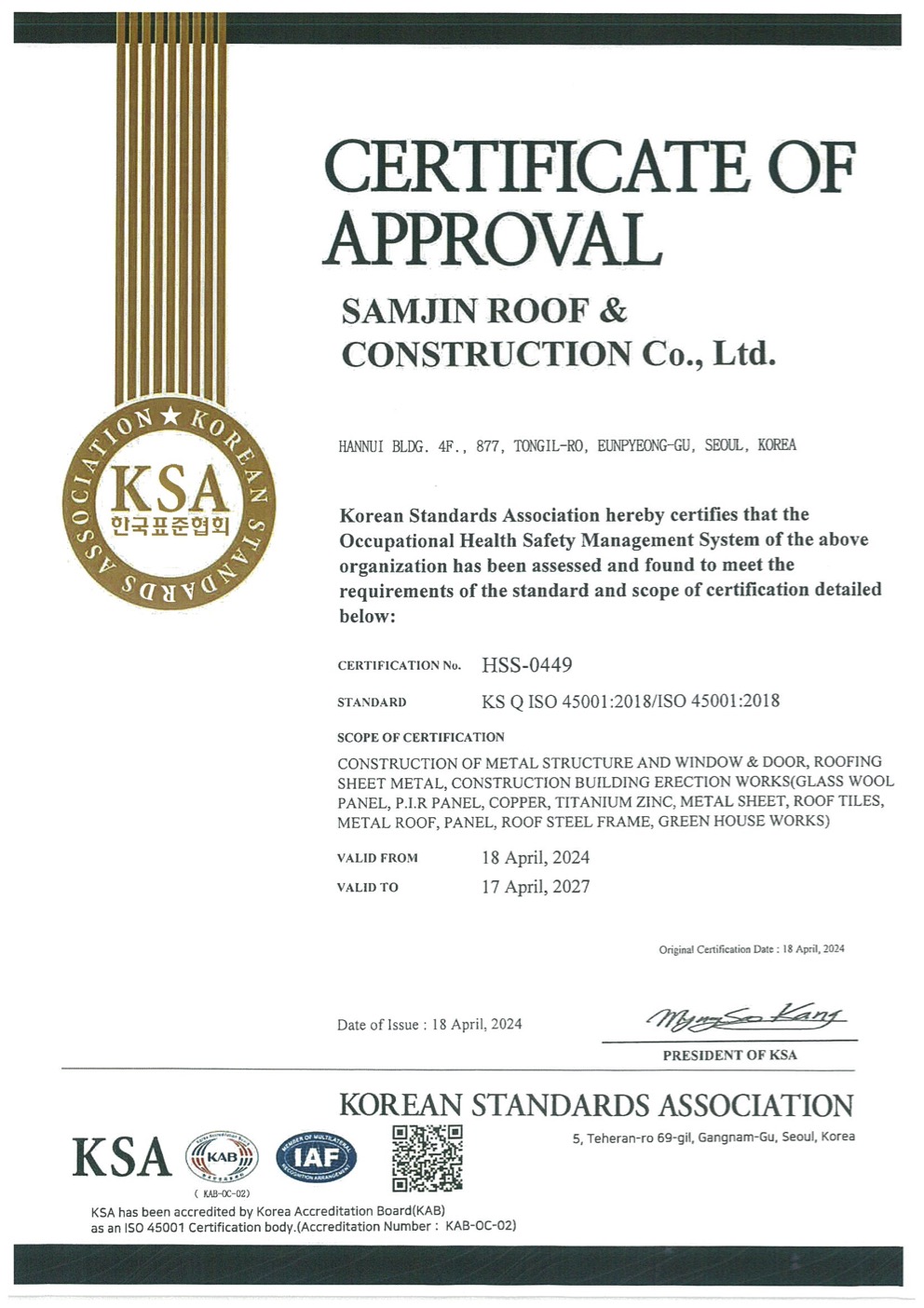 서울특별시 은평구 통일로 877 한뉘빌딩 4층 | Tel : 02-352-9196 Fax : 02-357-2661 | e-mail : samjin@korearoof.co.kr