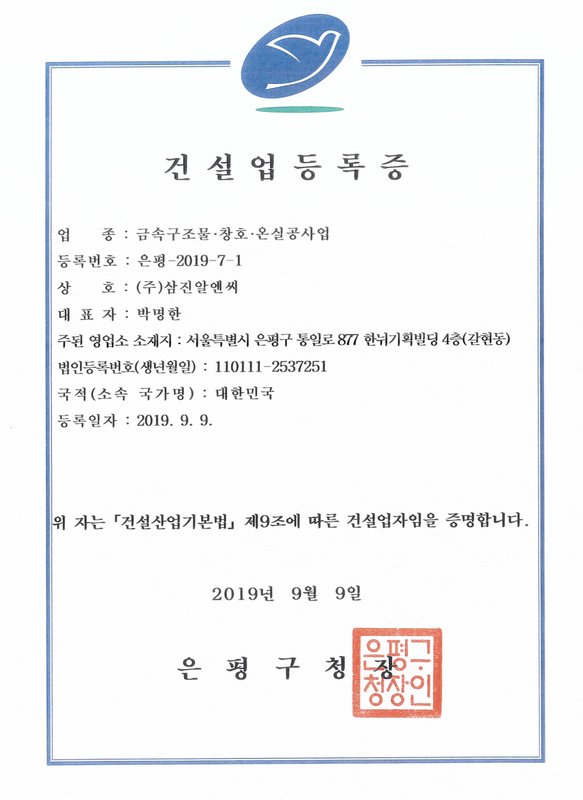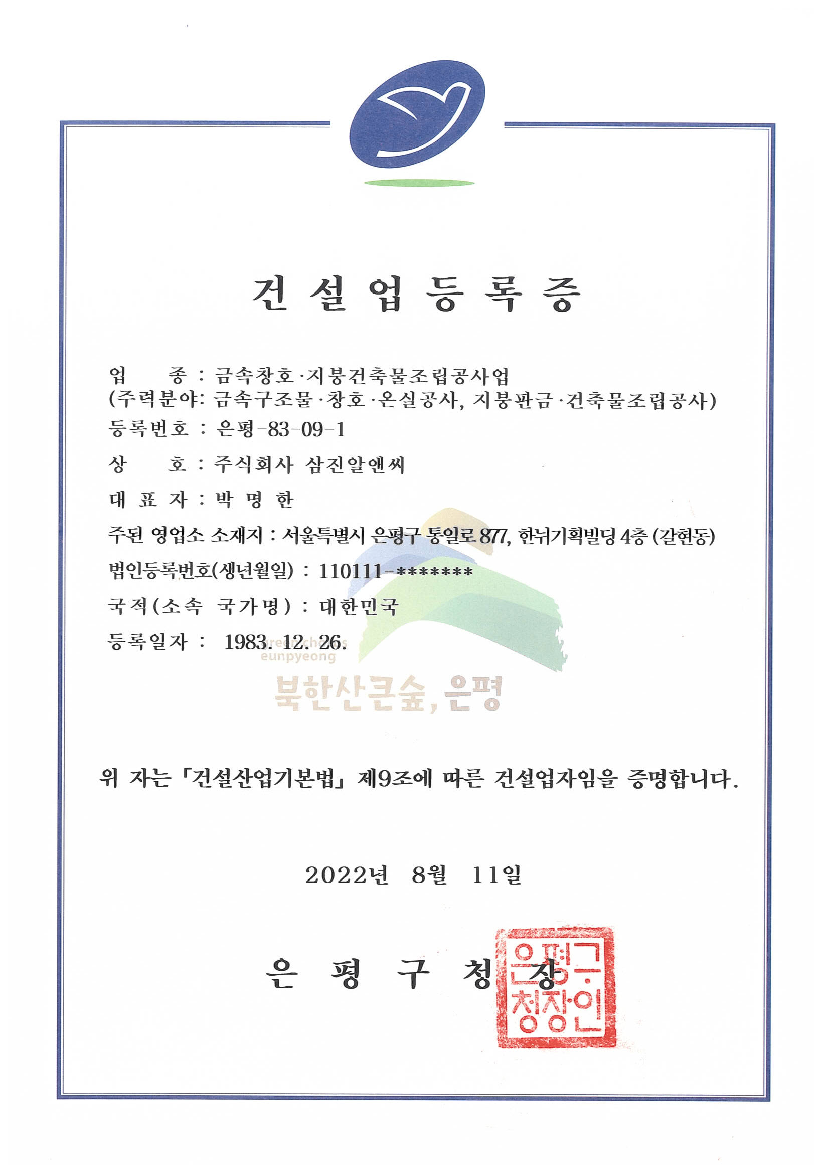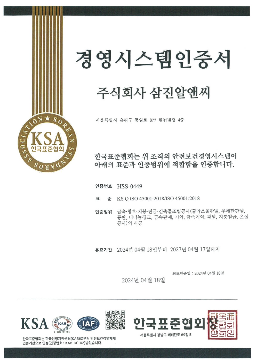 서울특별시 은평구 통일로 877 한뉘빌딩 4층 | Tel : 02-352-9196 Fax : 02-357-2661 | e-mail : samjin@korearoof.co.kr