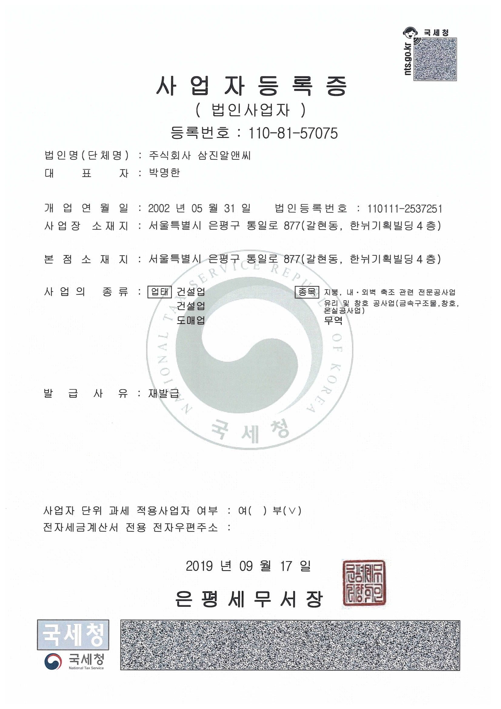 대표이사 : 박명한 | 사업자등록번호 : 110-81-57075