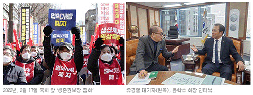 윤 회장은 생산체계 원상복구 등 현안문제들을 정부와 협의, 대화로 풀어나가는 것을 원칙으로 하되 문제해결이 안될 시는 대한기계설비건설협회 등과 연대해 사생결단의 각오로 집회 등도 불사하겠다는 뜻을 분명히 했다. 윤 회장은 이미 지난해 2월, 4월 여의도 국회와 세종시 정부청사 앞에서 ‘전문건설사업자 생존권 보장’을 호소하는 대규모 집회를 이 끌은 바 있다.